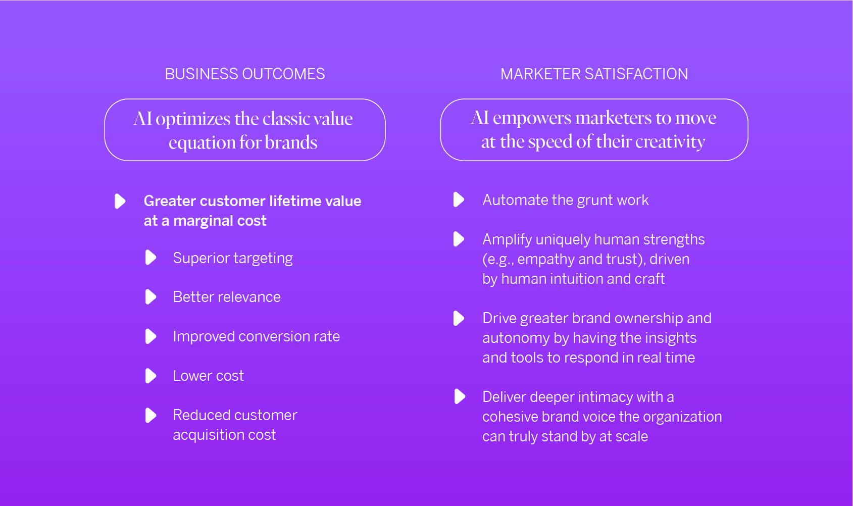Striking the right balance between these two goals has long felt just out of reach, with marketers often forced to compromise one for the other. With the rise of AI, we have finally reached the moment where personalized connection at scale is a real possibility.