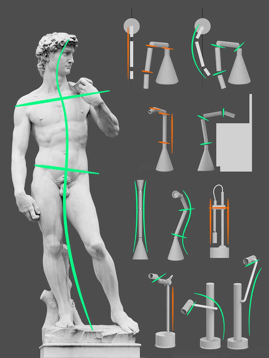 Posture emerged as a critical design element. Inspired by the sculpture principle of contrapposto, we defined postures that feel quietly engaged and balanced, avoiding positions that feel broken, mechanical or uncomfortable. Drawing connections between the human body and robotic form, we considered weight shift, relaxed poses, center of gravity, and opposing angles to create a sense of life even in stillness. These posture rules informed both static form and the way Nome moves and occupies space.